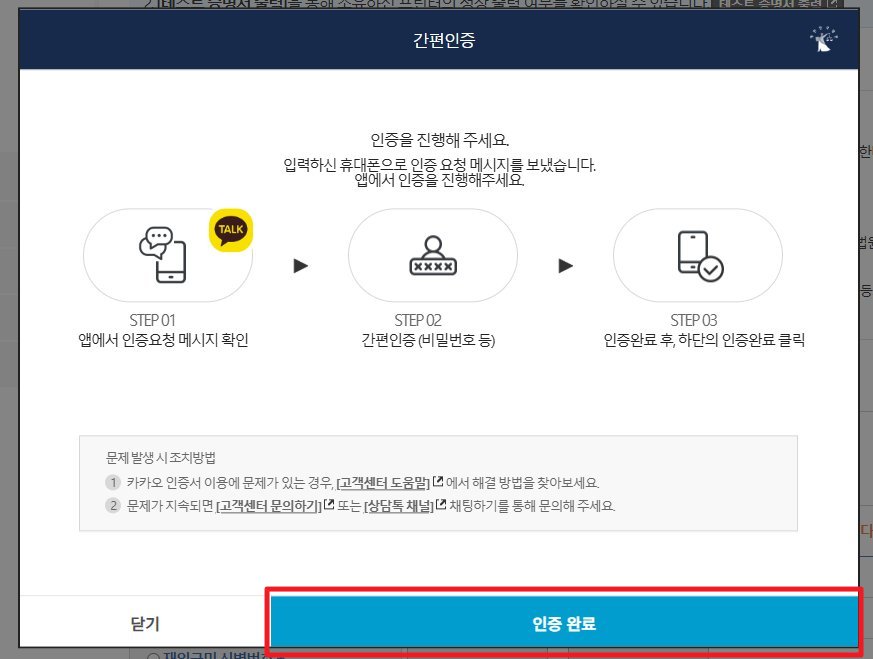 모바일로 인증이 완료 되었으면 pc화면에서도 인증완료 버튼을 클릭 합니다.