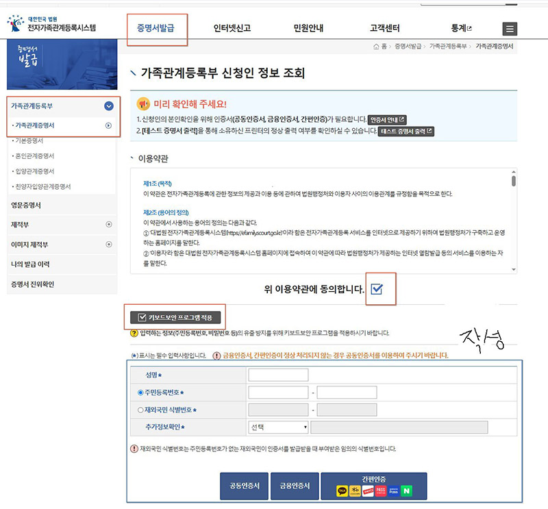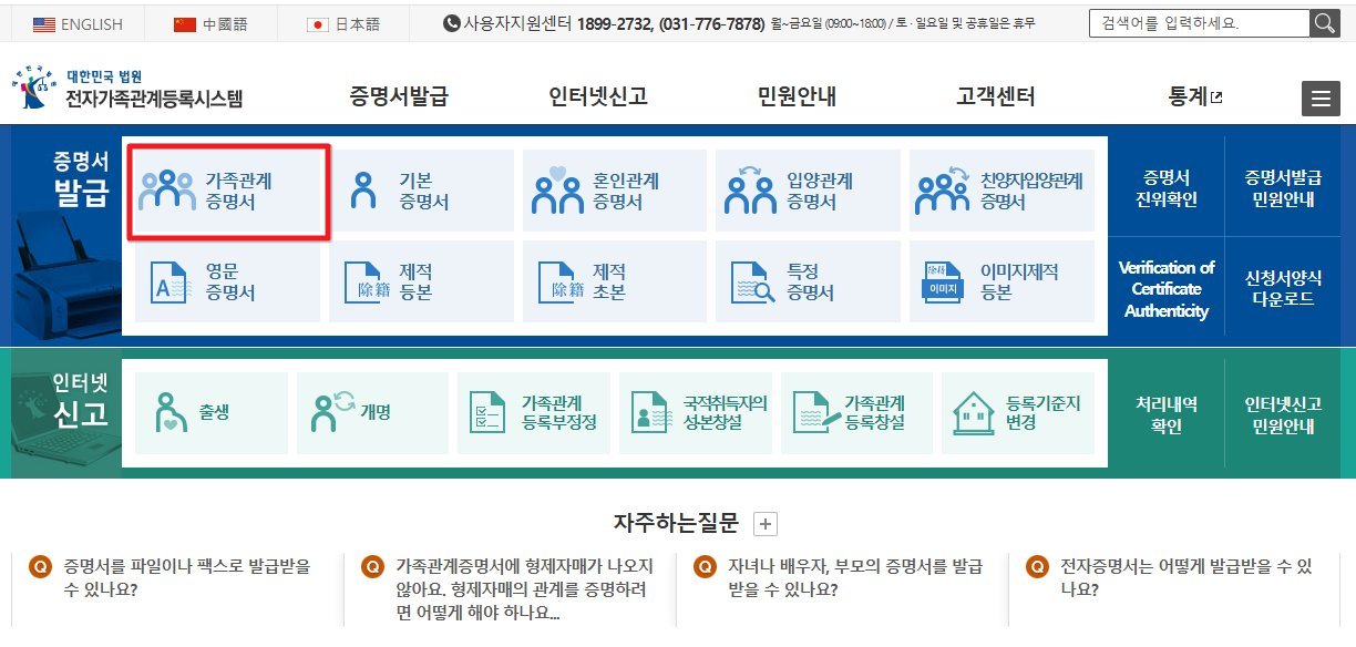가족관계증명서 인터넷발급 방법
