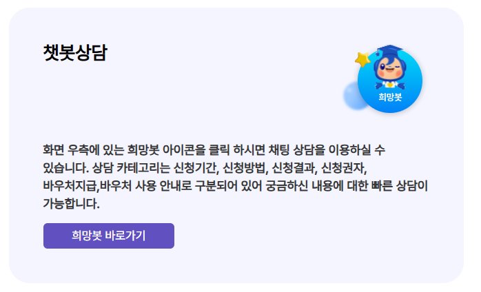 - 지급 방식: 바우처 형태 또는 카드 포인트 형태