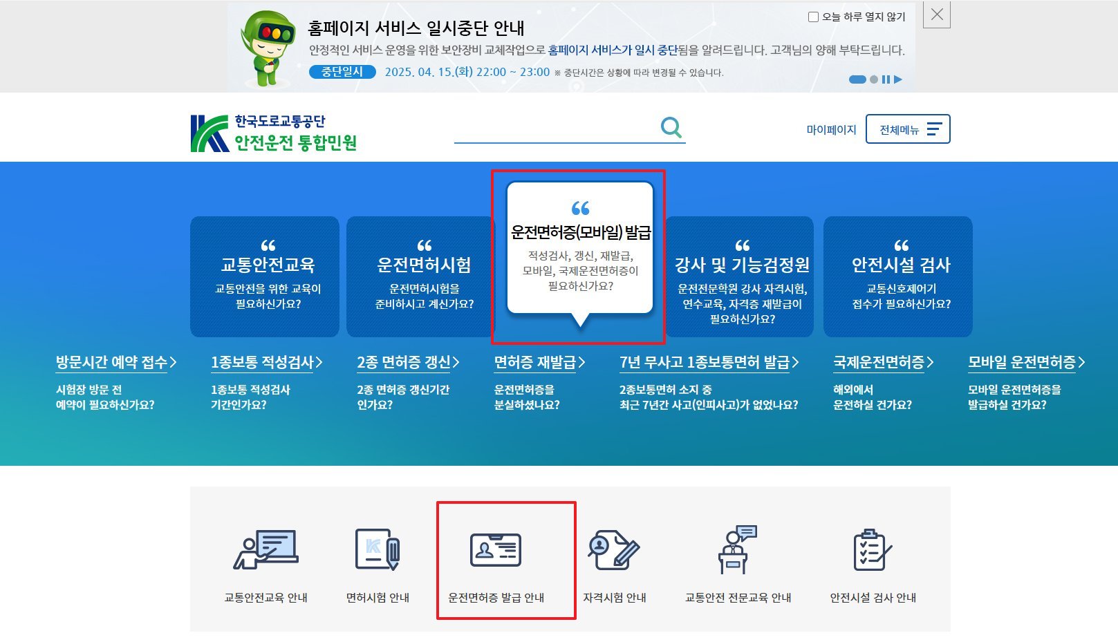 - '모바일 운전면허증 발급' 메뉴를 선택합니다.