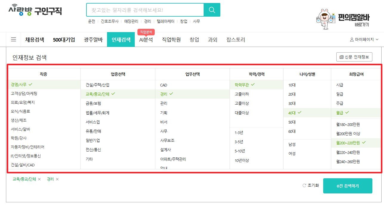 - 직종, 업종, 근무 지역, 고용 형태 등 맞춤 검색 기능 제공