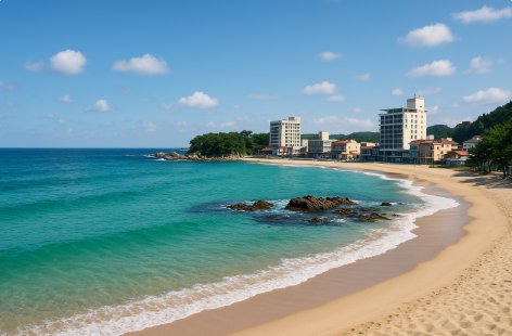 - 특징: 백사장과 소나무 숲이 어우러진 가족 피서지