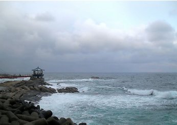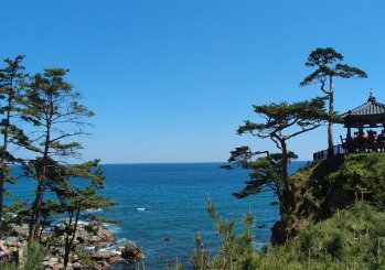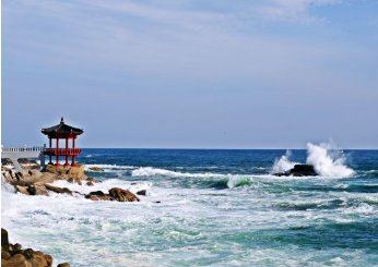 파도소리와 어우러진 전통 정자. 새벽 해돋이 명소로 연인, 가족 단위 여행객에게 인기.