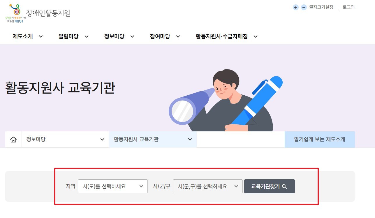 장애인 활동지원사 교육기관 전국 위치 찾기