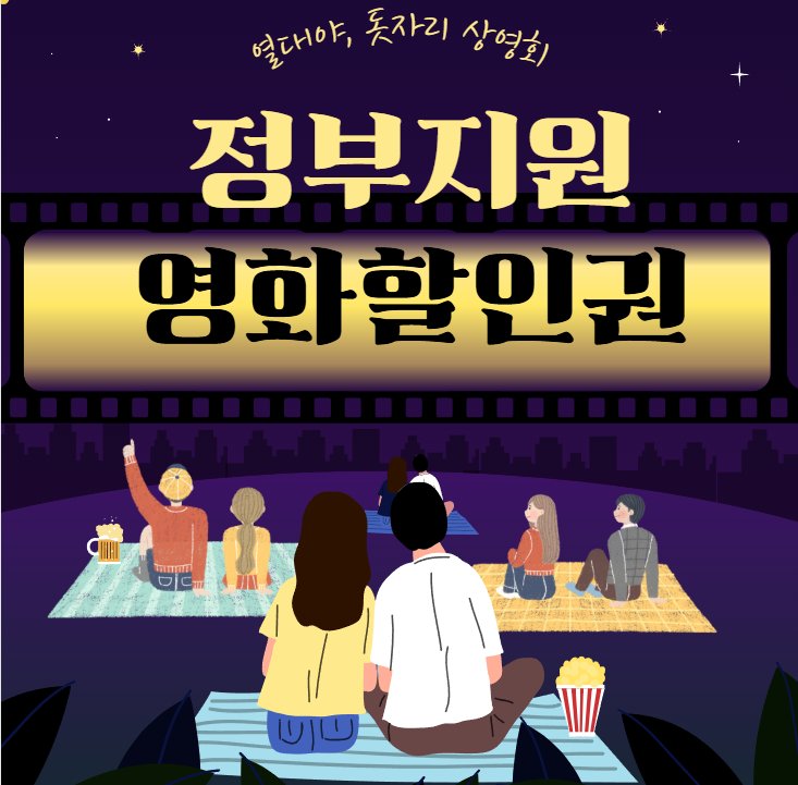 - 7,000원 관람권 + 6,000원 정부 할인권 = 최소 1,000원으로 영화 관람 가능