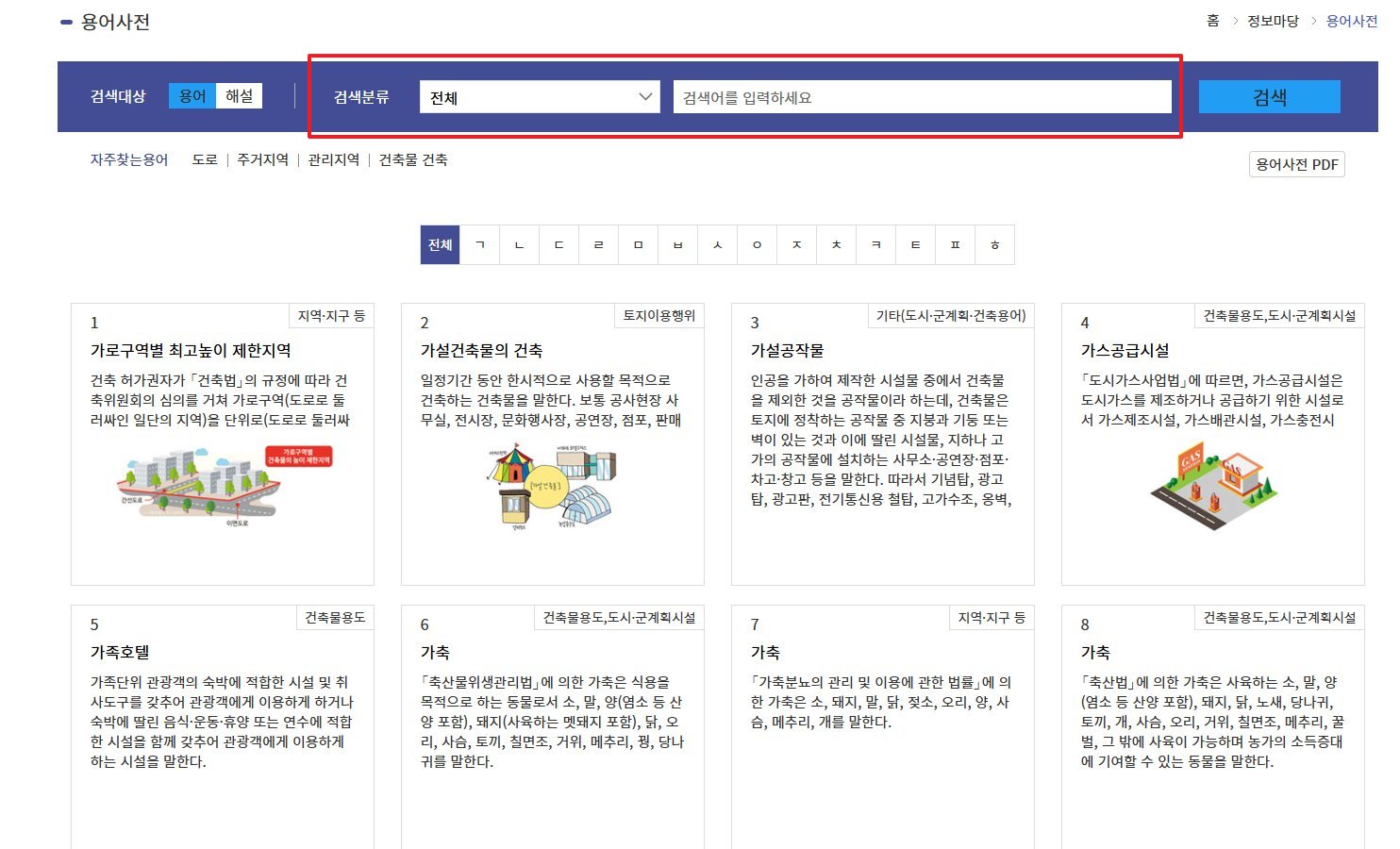 - 각 항목을 클릭하면 관련 법령 및 인허가 절차도 함께 제공